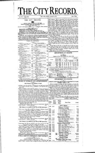 The City Record newspaper publishes notices which includes but is not limited to: public hearings and meetings, public auctions and sales, solicitations and awards and official rules proposed and adopted by city agencies. This is the City Record Newspaper for March 11, 1918.