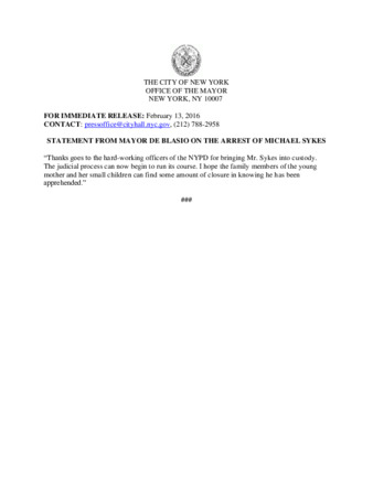 Mayor's Press Release: STATEMENT FROM MAYOR DE BLASIO ON THE ARREST OF MICHAEL SYKES