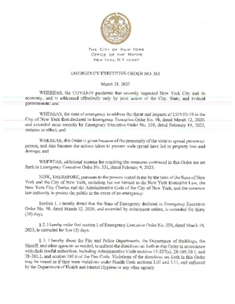 Emergency Executive Order No. 363, is being submitted to extend Emergency Executive Order No. 359, dated March 16, 2023, for five (5) days, if this relates to Covid-19 pandemic.