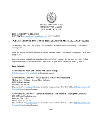 PUBLIC SCHEDULE FOR MAYOR ERIC ADAMS FOR MONDAY, AUGUST 22, 2022