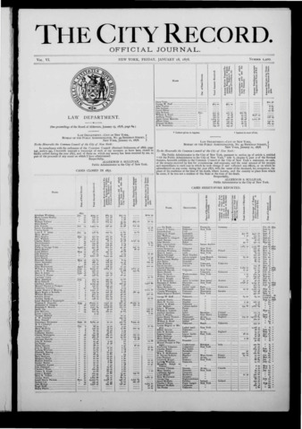 The City Record newspaper publishes notices which includes but is not limited to: public hearings and meetings, public auctions and sales, solicitations and awards and official rules proposed and adopted by city agencies. This is the City Record Newspaper for January 18, 1878.