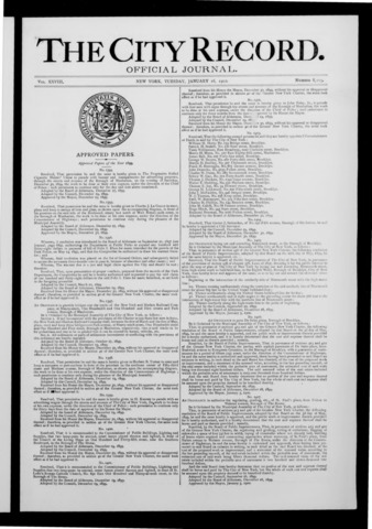 The City Record newspaper publishes notices which includes but is not limited to: public hearings and meetings, public auctions and sales, solicitations and awards and official rules proposed and adopted by city agencies. This is the City Record Newspaper for January 16, 1900.