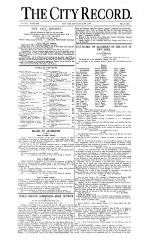 The City Record newspaper publishes notices which includes but is not limited to: public hearings and meetings, public auctions and sales, solicitations and awards and official rules proposed and adopted by city agencies. This is the City Record Newspaper for June 04, 1914.