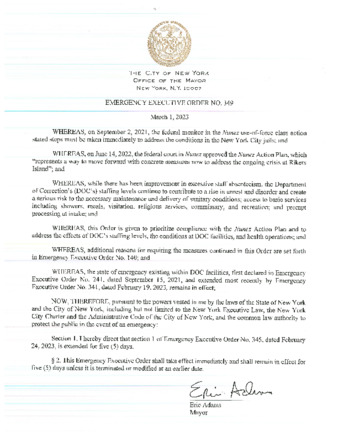 Emergency Executive Order No. 349, is being submitted to extend Emergency Executive Order No. 345, dated February 24, 2023, for (5) days, if this relates to Rikers.