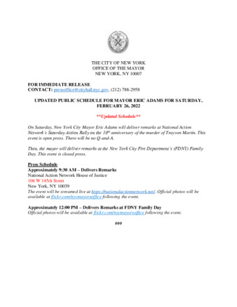 UPDATED PUBLIC SCHEDULE FOR MAYOR ERIC ADAMS FOR SATURDAY, FEBRUARY 26, 2022