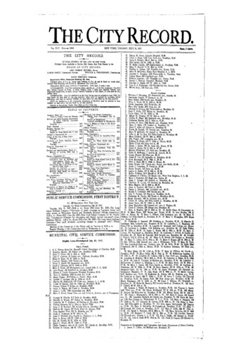 The City Record newspaper publishes notices which includes but is not limited to: public hearings and meetings, public auctions and sales, solicitations and awards and official rules proposed and adopted by city agencies. This is the City Record Newspaper for July 31, 1917 with supplement.