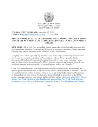 MAYOR ADAMS, ELECTED LEADERS HAIL ISO’S APPROVAL OF APPLICATION TO CREATE NEW MERCHANT CATEGORY CODE FOR GUN AND AMMUNITION SELLERS