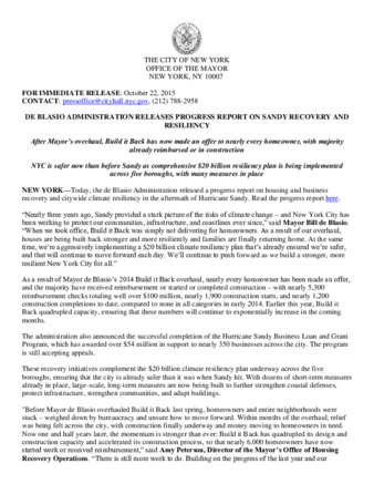 Mayor's Press Release: DE BLASIO ADMINISTRATION RELEASES PROGRESS REPORT ON SANDY RECOVERY AND RESILIENCY