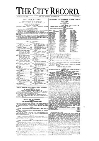 The City Record newspaper publishes notices which includes but is not limited to: public hearings and meetings, public auctions and sales, solicitations and awards and official rules proposed and adopted by city agencies. This is the City Record Newspaper for December 16, 1915.