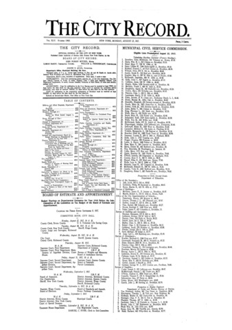 The City Record newspaper publishes notices which includes but is not limited to: public hearings and meetings, public auctions and sales, solicitations and awards and official rules proposed and adopted by city agencies. This is the City Record Newspaper for August 27, 1917.