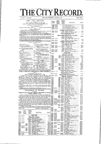 The City Record newspaper publishes notices which includes but is not limited to: public hearings and meetings, public auctions and sales, solicitations and awards and official rules proposed and adopted by city agencies. This is the City Record Newspaper for January 09, 1918.