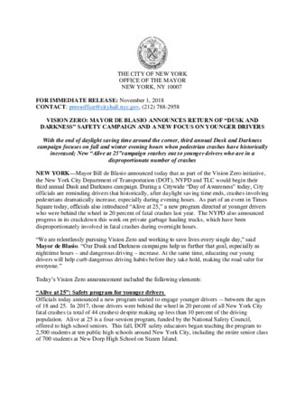 Press Release: VISION ZERO: MAYOR DE BLASIO ANNOUNCES RETURN OF “DUSK AND DARKNESS” SAFETY CAMPAIGN AND A NEW FOCUS ON YOUNGER DRIVERS