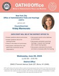 OATH staff were at the district office to assist and educate people about what to do should they have received a summons and to check to determine if someone has an outstanding summons. Materials about remote hearings and other free resources were provided to the public as well.
