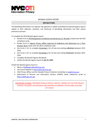 The Identifying Information Law requires each agency to submit a report regarding, among other items, the collection, retention, and disclosure of identifying information by such agency and their "human services" contractors or subcontractors, by no later than July 31, 2018, and every two years.