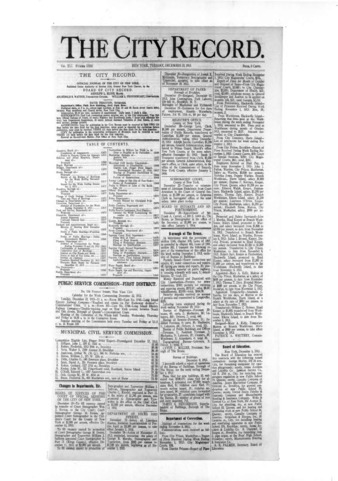 The City Record newspaper publishes notices which includes but is not limited to: public hearings and meetings, public auctions and sales, solicitations and awards and official rules proposed and adopted by city agencies. This is the City Record Newspaper for December 23, 1913.