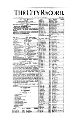The City Record newspaper publishes notices which includes but is not limited to: public hearings and meetings, public auctions and sales, solicitations and awards and official rules proposed and adopted by city agencies. This is the City Record Newspaper for September 22, 1914.