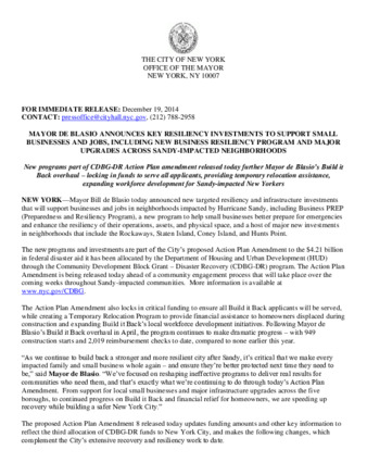 Mayor's Press Release: MAYOR DE BLASIO ANNOUNCES KEY RESILIENCY INVESTMENTS TO SUPPORT SMALL BUSINESSES AND JOBS, INCLUDING NEW BUSINESS RESILIENCY PR