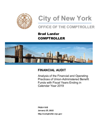 This report provides a comparative analysis of the overall financial activities of 92 union‑administered welfare and annuity funds that in 2019 received approximately $1.45 billion in City contributions for the benefit of active and retired City employees.
