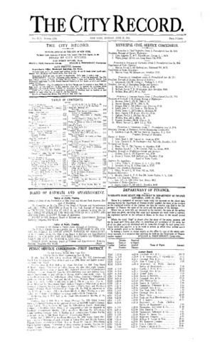 The City Record newspaper publishes notices which includes but is not limited to: public hearings and meetings, public auctions and sales, solicitations and awards and official rules proposed and adopted by city agencies. This is the City Record Newspaper for June 29, 1914.