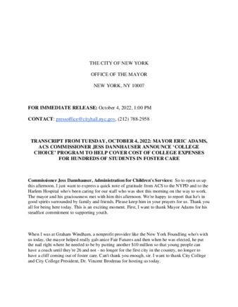 TRANSCRIPT: MAYOR ERIC ADAMS, ACS COMMISSIONER JESS DANNHAUSER ANNOUNCE ‘COLLEGE CHOICE’ PROGRAM TO HELP COVER COST OF COLLEGE EXPENSES FOR STUDENTS