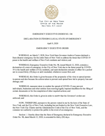 Emergency Executive Order No. 106