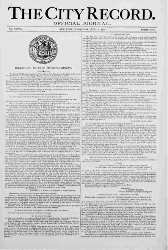 The City Record newspaper publishes notices which includes but is not limited to: public hearings and meetings, public auctions and sales, solicitations and awards and official rules proposed and adopted by city agencies. This is the City Record Newspaper for July 11, 1900.