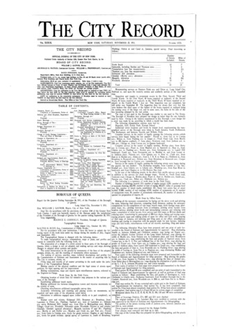 The City Record newspaper publishes notices which includes but is not limited to: public hearings and meetings, public auctions and sales, solicitations and awards and official rules proposed and adopted by city agencies. This is the City Record Newspaper for November 25, 1911.