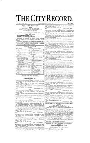 The City Record newspaper publishes notices which includes but is not limited to: public hearings and meetings, public auctions and sales, solicitations and awards and official rules proposed and adopted by city agencies. This is the City Record Newspaper for April 16, 1918.