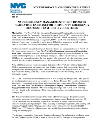 - 13-23 NYC EM Holds CERT Simulation Exercise