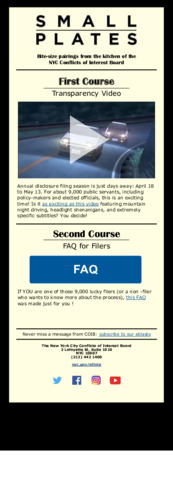 Periodic newsletter containing bite-sized items and media from the New York City Conflicts of Interest Board