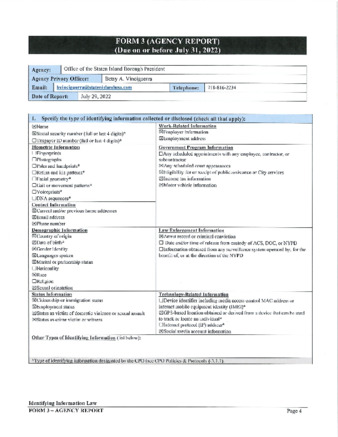 Form 3 Staten Island Borough President (Richmond County) Report - Identifying Information Law 2022