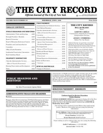 The City Record newspaper publishes notices which includes but is not limited to: public hearings and meetings, public auctions and sales, solicitations and awards and official rules proposed and adopted by city agencies.
