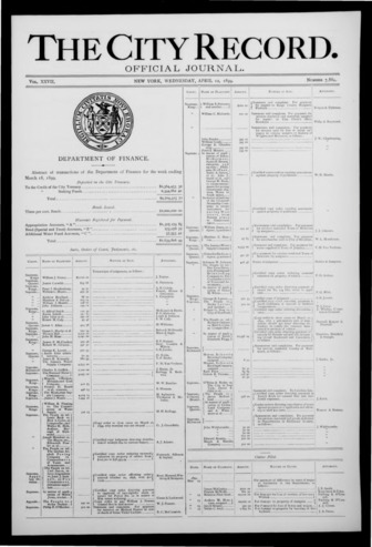 The City Record newspaper publishes notices which includes but is not limited to: public hearings and meetings, public auctions and sales, solicitations and awards and official rules proposed and adopted by city agencies. This is the City Record Newspaper for April 12, 1899.