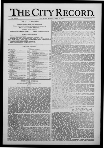 The City Record newspaper publishes notices which includes but is not limited to: public hearings and meetings, public auctions and sales, solicitations and awards and official rules proposed and adopted by city agencies. This is the City Record Newspaper for April 25, 1904.