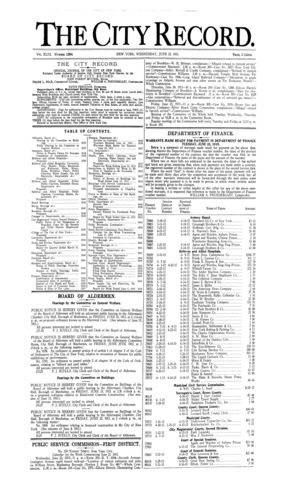 The City Record newspaper publishes notices which includes but is not limited to: public hearings and meetings, public auctions and sales, solicitations and awards and official rules proposed and adopted by city agencies. This is the City Record Newspaper for June 23, 1915.
