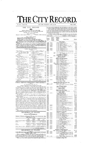 The City Record newspaper publishes notices which includes but is not limited to: public hearings and meetings, public auctions and sales, solicitations and awards and official rules proposed and adopted by city agencies. This is the City Record Newspaper for April 10, 1918.