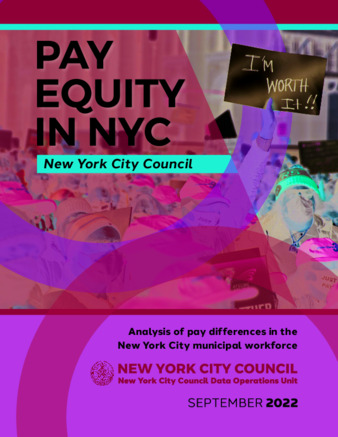 This PDF contains the policy report entitled "Pay Equity in NYC". This report includes a series of proposed legislation that is intended to enhance the Council’s oversight of the city’s ongoing effort to achieve pay equity across the municipal workforce.
