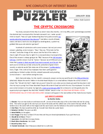 The New York City Conflicts of Interest Board's monthly publication featuring ethics-focused puzzles.
