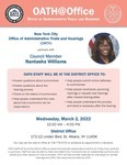 OATH staff were at the district office to assist and educate people about what to do should they have received a summons and to check to determine if someone has an outstanding summons. Materials about remote hearings and other free resources were provided to the public as well.