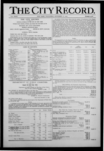 The City Record newspaper publishes notices which includes but is not limited to: public hearings and meetings, public auctions and sales, solicitations and awards and official rules proposed and adopted by city agencies. This is the City Record Newspaper for November 16, 1904.