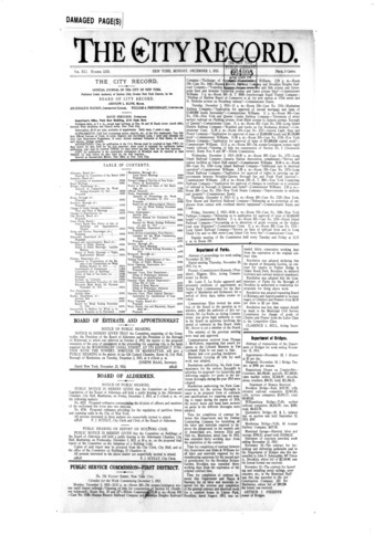 The City Record newspaper publishes notices which includes but is not limited to: public hearings and meetings, public auctions and sales, solicitations and awards and official rules proposed and adopted by city agencies. This is the City Record Newspaper for December 01, 1913.