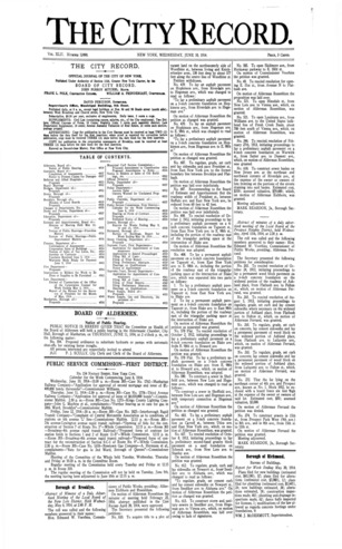 The City Record newspaper publishes notices which includes but is not limited to: public hearings and meetings, public auctions and sales, solicitations and awards and official rules proposed and adopted by city agencies. This is the City Record Newspaper for June 10, 1914 with supplement.