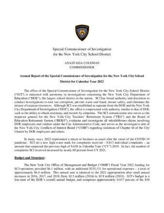 Annual Report of the Special Commissioner of Investigation for the New York City School District for Calendar Year 2022