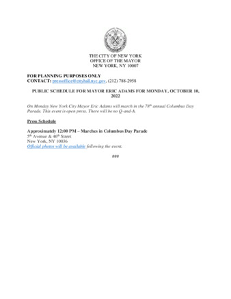 PUBLIC SCHEDULE FOR MAYOR ERIC ADAMS FOR MONDAY, OCTOBER 10, 2022