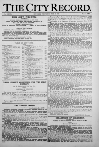 The City Record newspaper publishes notices which includes but is not limited to: public hearings and meetings, public auctions and sales, solicitations and awards and official rules proposed and adopted by city agencies. This is the City Record Newspaper for June 30, 1909.