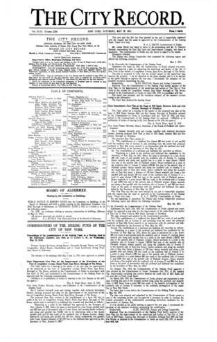 The City Record newspaper publishes notices which includes but is not limited to: public hearings and meetings, public auctions and sales, solicitations and awards and official rules proposed and adopted by city agencies. This is the City Record Newspaper for May 29, 1915.