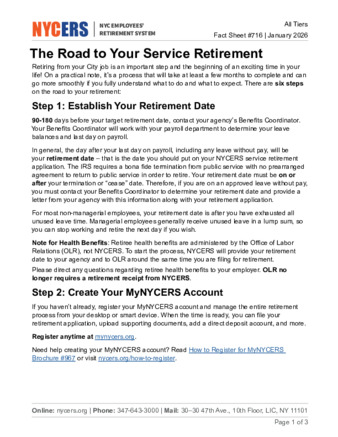 This fact sheet details the step-by-step process city employees must follow on the road to service retirement with NYCERS. These steps span the course of several months.