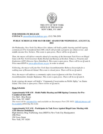 PUBLIC SCHEDULE FOR MAYOR ERIC ADAMS FOR WEDNESDAY, AUGUST 24, 2022