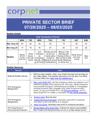 - NYCEM CorpNet Public-Private Sector Weekly Incident Brief 07-28-25