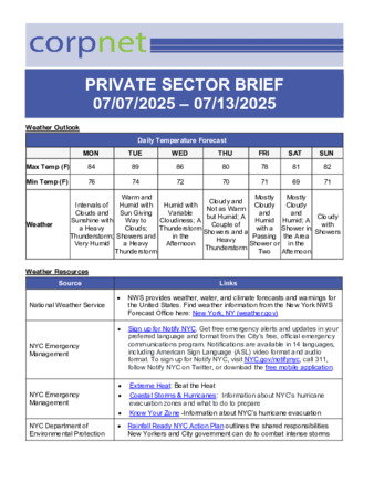 - NYCEM CorpNet Public-Private Sector Weekly Incident Brief 07-07-25